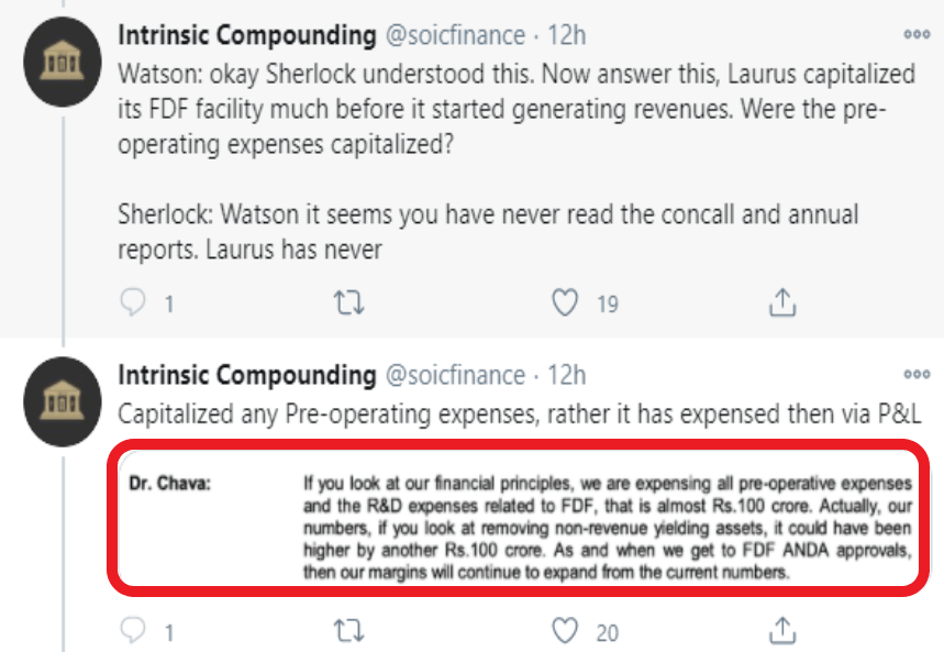 The idea for this post started with a Tweet which claims Laurus Labs’ cash levels are too low for comfort. How can Laurus have just 2-4 Crs of cash at the end of each financial year, despite a healthy TTM topline of 3682 Crs?