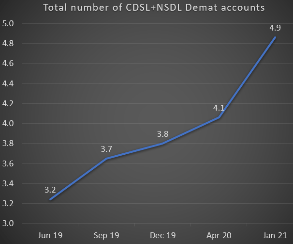 - First time investors/traders got introduced to the markets due to lockdown and subsequent work from home culture.