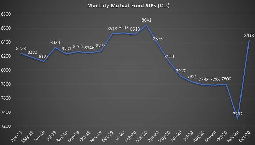 - Mutual Fund SIPs back to Pre-Covid levels.