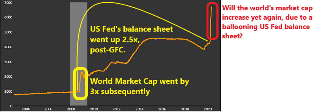 - The markets are probably discounting higher future market caps, thanks to an exploding US Fed balance sheet.