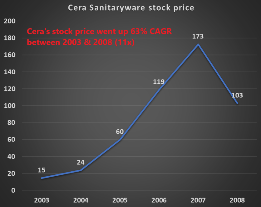 Another “bullet maker” Cera Sanitaryware had a similar story. Sales were rising quickly, thanks to Cera’s dominance in their domain.