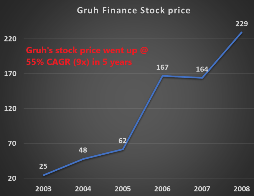 Gruh’s stock price went up 9x in five years.