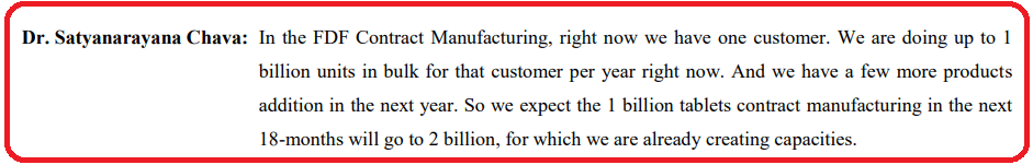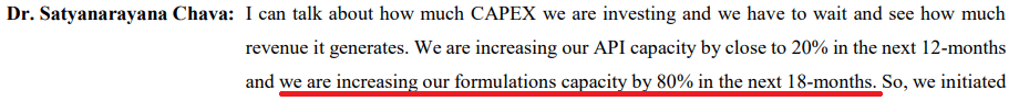 Q3 FY 2021 Concall – “See, if you look at the evolution from 80% to ARV APIs, in the five years we moved to 38% of ARV APIs. Similarly, our revenue dependency on ARV formulations currently is very high. But in the next five years, we will also diversify our revenues coming from non-ARV formulations significantly and the dependence on ARV will come down. Because there are no new formulations to be developed in the ARVs, we are almost done with developments. So, development focus is shifting from ARV to non-ARV. And also, we are adding very large capacity in Vizag and we have taken land for formulations expansion in Hyderabad as well. So if you want to look at where we will be in say, three, four years down the line, I am sure we will be discussing on non-ARV in five years from now. If you look at the calls one and a half year back, half of the times people were asking questions on Efavirenz. Now nobody asks questions on Efavirenz. Two years from now people will not ask questions on ARV APIs. And maybe another two years from then people will not ask about ARV formulations, people may talk about what is we are doing in our Laurus Bio?, what growth we have in Laurus Bio?, what other therapy areas we will be focusing?, what kind of delivery dosage forms we are doing?. So, company s in the transformation phase, so we need time and we are very confident to expand our portfolio beyond just ARV.“