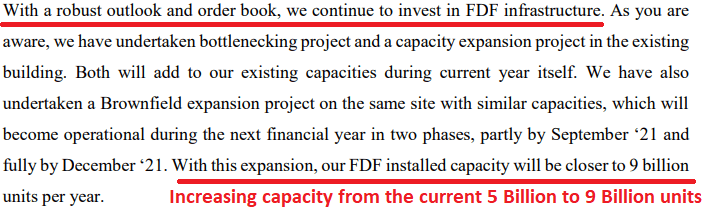 Formulations / FDF showed up for the first time in 2020 Annual Report.