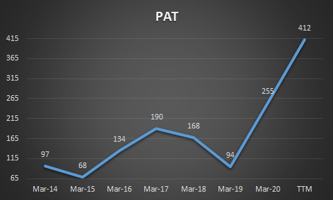 This is a pattern noted by the famous investor, Mr. Vijay Kedia. He believes multibagger companies exhibit the following characteristics – Small in size (at least it was small when I started investing in this co.), Medium in experience, Large in aspiration and Extra large in market potential. I am of the opinion that the company has all 4 ingredients and is likely to scale up to the next level, from here.